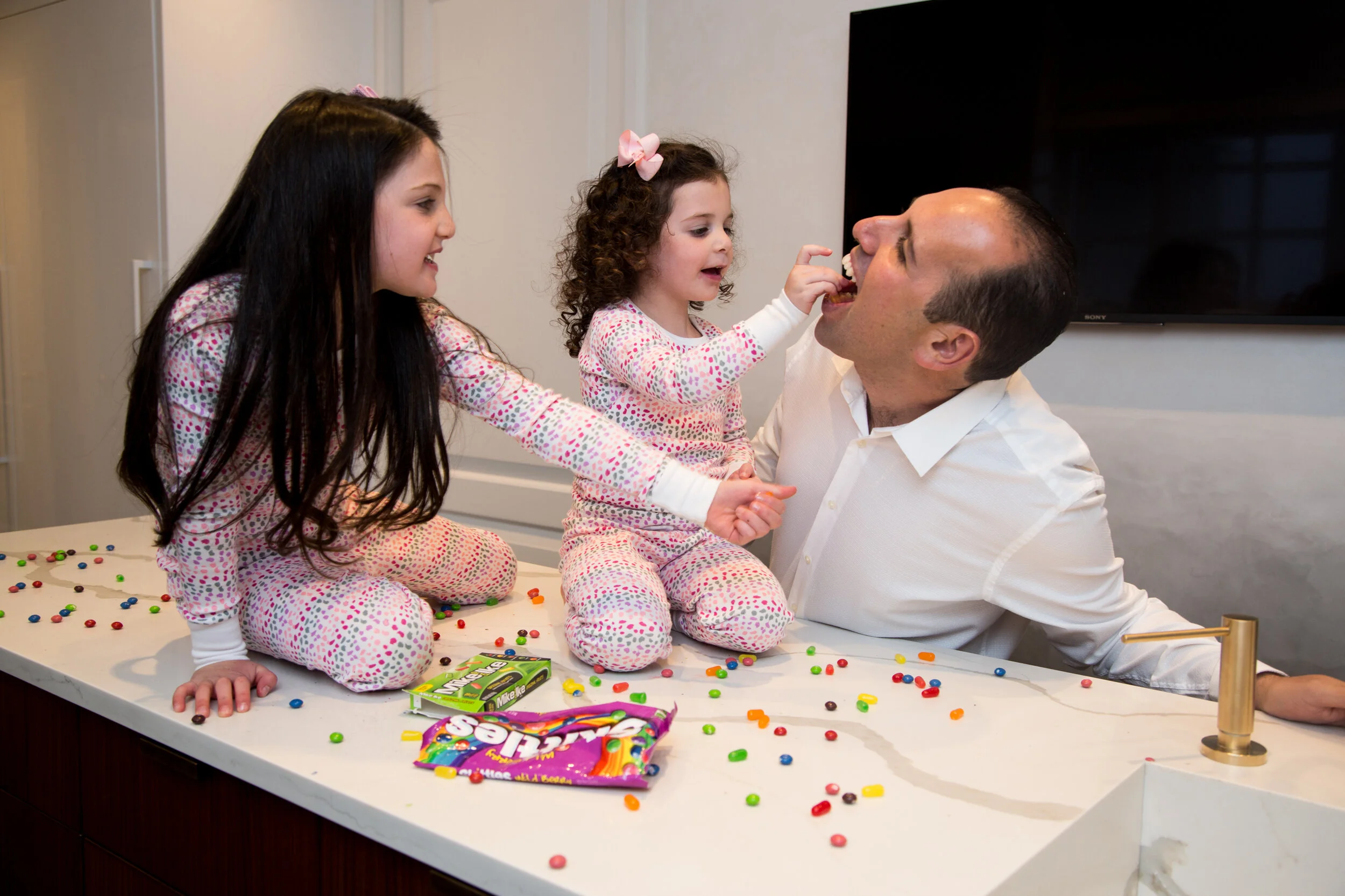 During a lot of my sessions the kids are running around and being bribed to smile with snacks, so I’ll snap some shots for some fun candids of them zipping in and out of the kitchen with every candy or chip they can reach from the snack shelf.