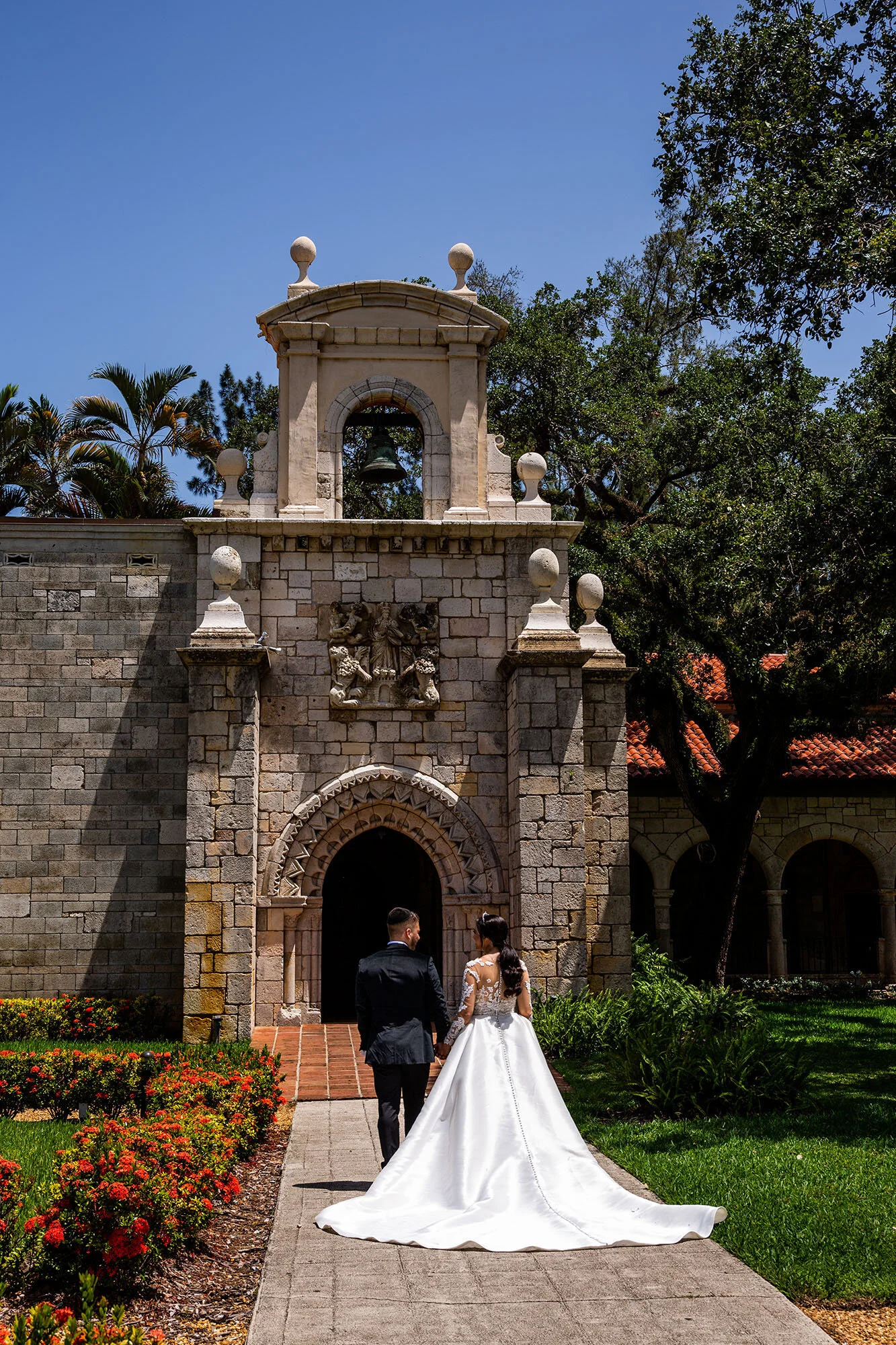 The Monastery features multiple garden areas as well as beautiful palm trees and a large grass area with a gazebo. Each area is gorgeous on its own but when you experience the full grounds you and your clients are sure to fall in love.